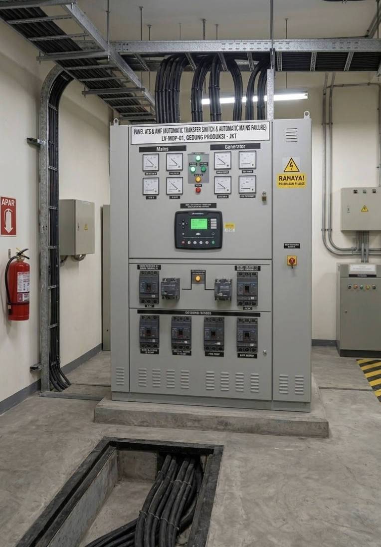 Panel ini memastikan sistem kelistrikan tetap berjalan tanpa gangguan sehingga sangat penting digunakan pada fasilitas yang membutuhkan kontinuitas listrik tinggi seperti industri, rumah sakit, gedung perkantoran, dan data center.